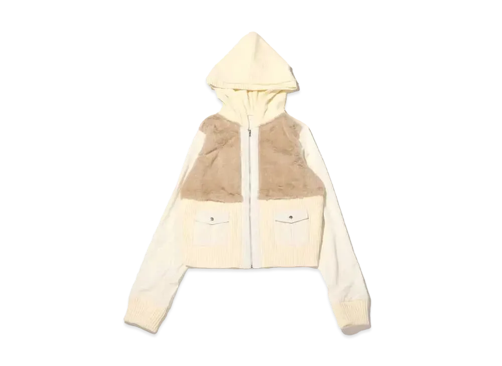 atmos pink Different Material Docking Fur Knit Cardigan "Ivory"