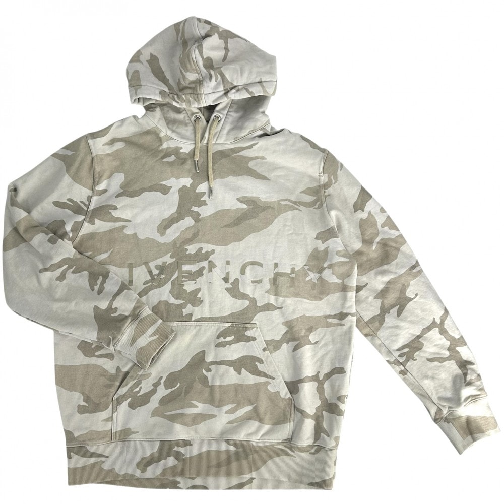 GIVENCHY ジバンシィ パーカー プルオーバー フーディー 迷彩 総柄 プリント カモフラージュ アパレル 服 トップス M BMJ0GM30W2 ベージュ ブラウン 茶 シルバー金具 コットン メンズ 秋 冬【中古品】