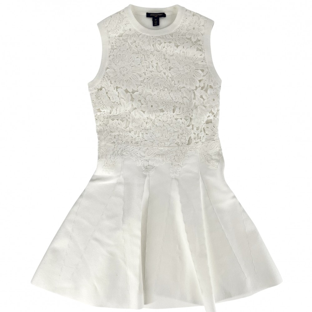 LOUIS VUITTON ルイヴィトン ワンピース ニット ノースリーブワンピース アパレル 服 レース サイドファスナー フラワー XS ホワイト 白 レーヨン ポリエステル ナイロン ポリウレタン レディース 春 夏【中古品】