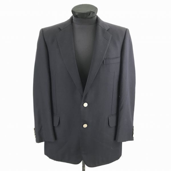80s-90sビンテージ★バーバリーBurberrys★最高級タスマニアウール/紺ブレザー【175AB6】ロゴ入り金ボタン/テーラードジャケット◆XBC373L