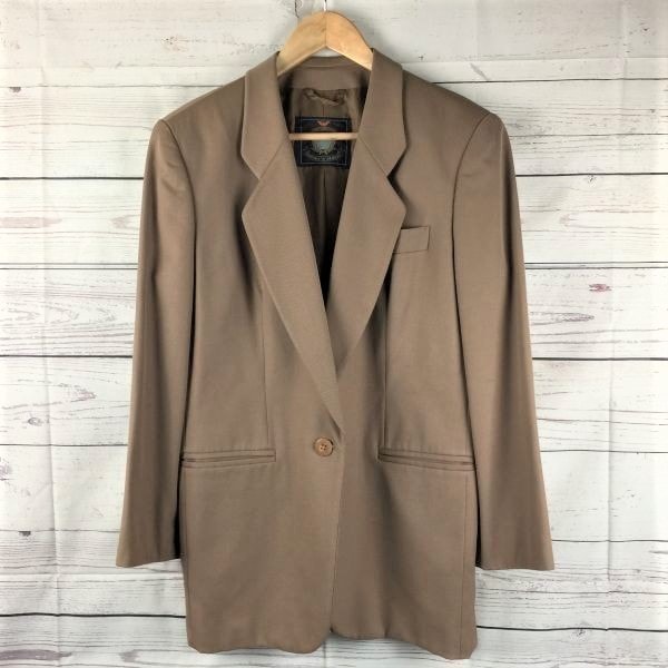 80s-90s/日本製ビンテージ★エンポリオアルマーニ★肩パッド/ブレザー/テーラードジャケット【42/レディースL程度/茶】1ボタン/Made in Japan◆XBA229-A