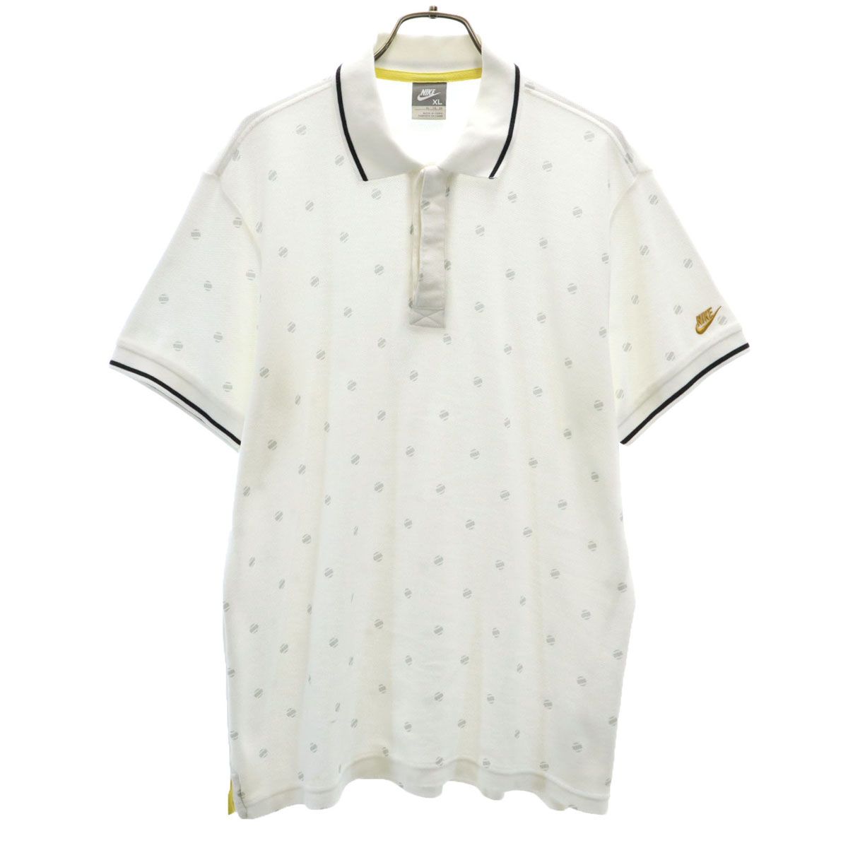 NIKE ナイキ 総柄 半袖 ポロシャツ XL ホワイト 比翼