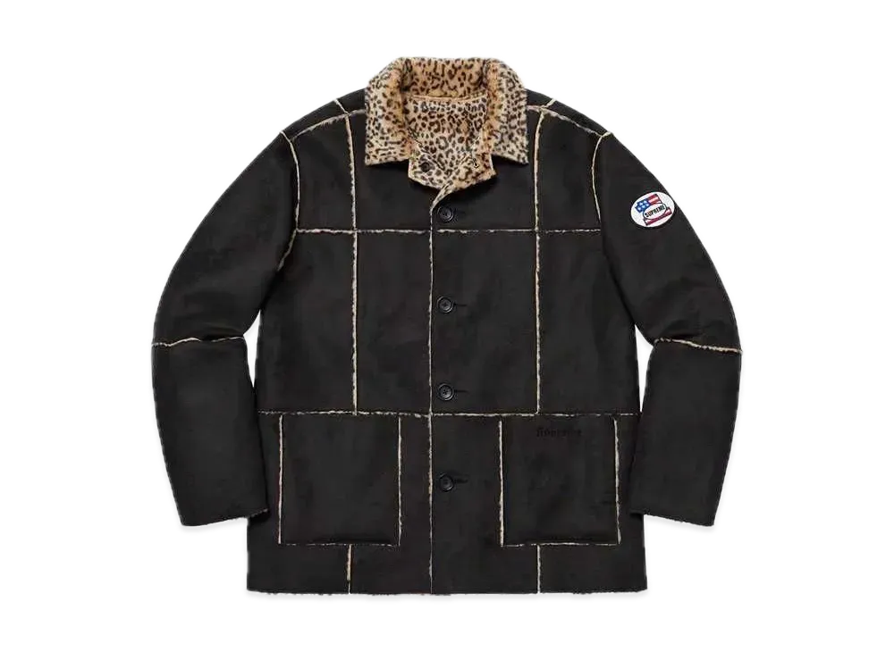 Supreme Reversible Faux Suede Leopard Coat "Black"