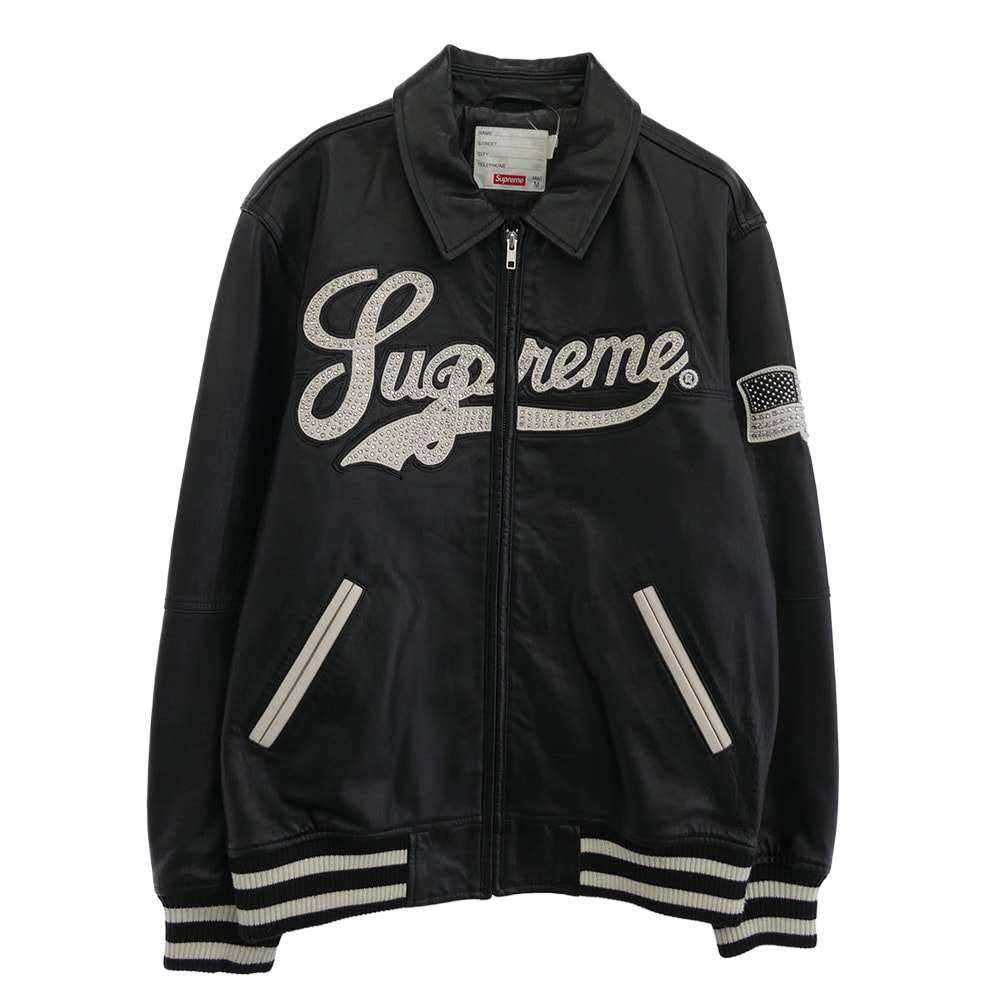 Supreme シュプリーム レザージャケット 16SS ワングラム期 Uptown Studded Leather Varsity Jacket スタッズ ロゴデザイン レザー ジップ バーシティ ジャケット ブラック系 M【中古】