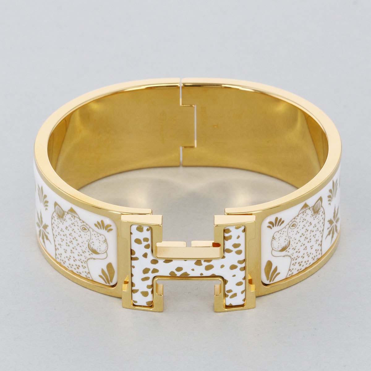 HERMES エルメス クリッククラック Hバングル レオパード バングル 700001 メタル エナメル ゴールド ホワイト レディース【中古】