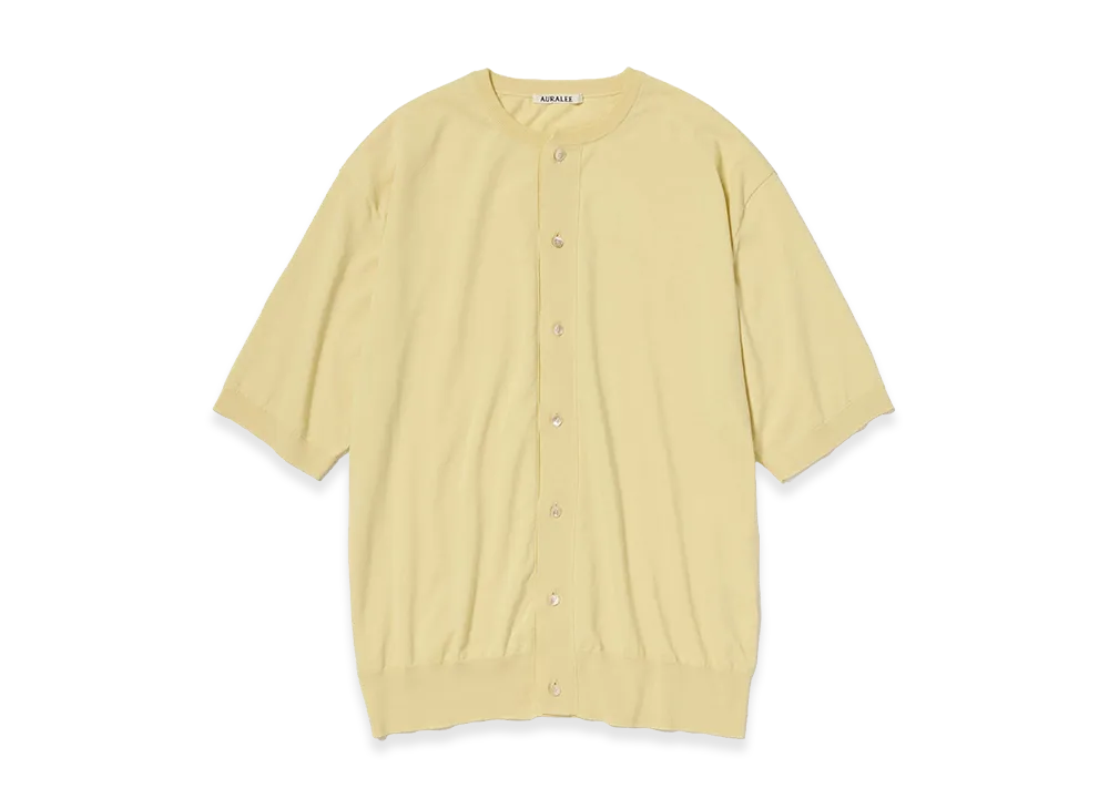 AURALEE Giza High Gauge Knit Half Sleeved Cardigan "Yellow Beige"