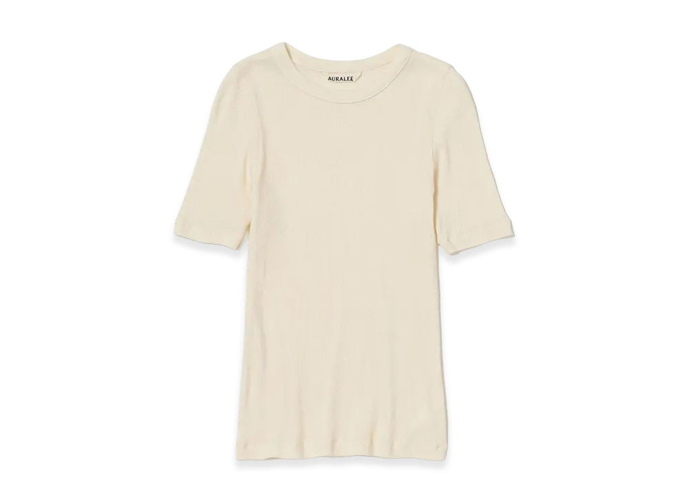 AURALEE Women's Organic Soft Rib Tee "Ivory"
