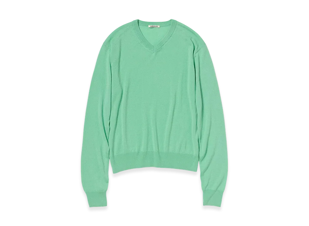 AURALEE Super Fine Cashmere Silk Knit V Neck P/O "Mint Green"