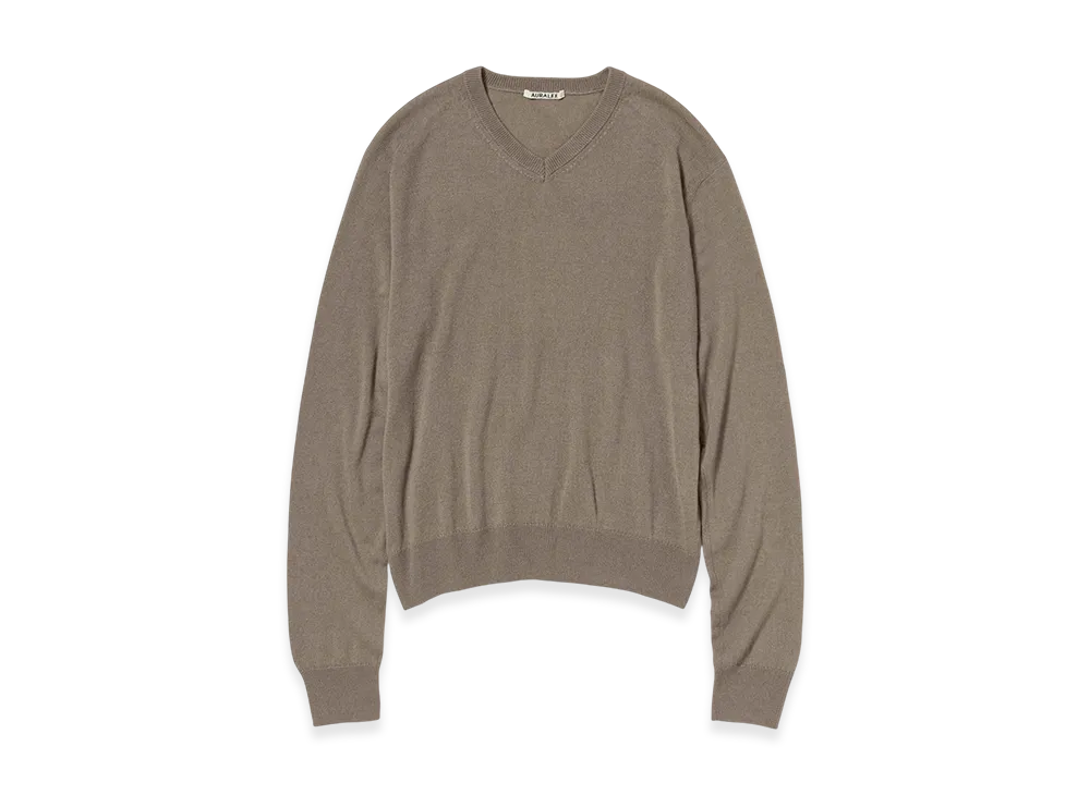 AURALEE Super Fine Cashmere Silk Knit V Neck P/O "Khaki Brown"
