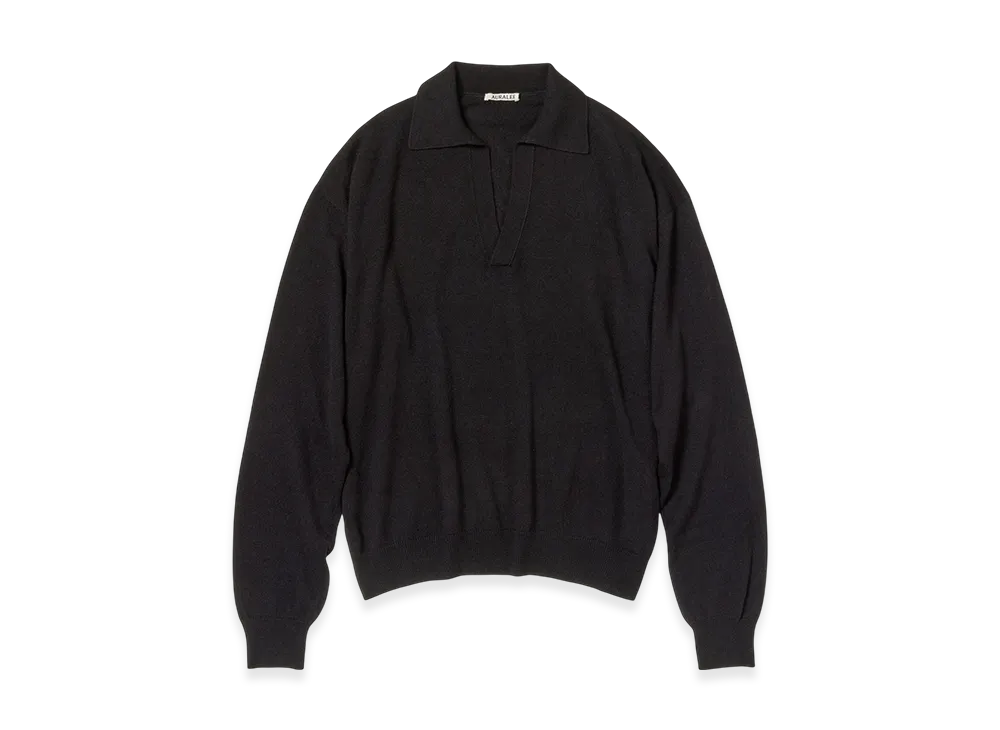 AURALEE Super Fine Cashmere Silk Knit Skipper Polo "Black"