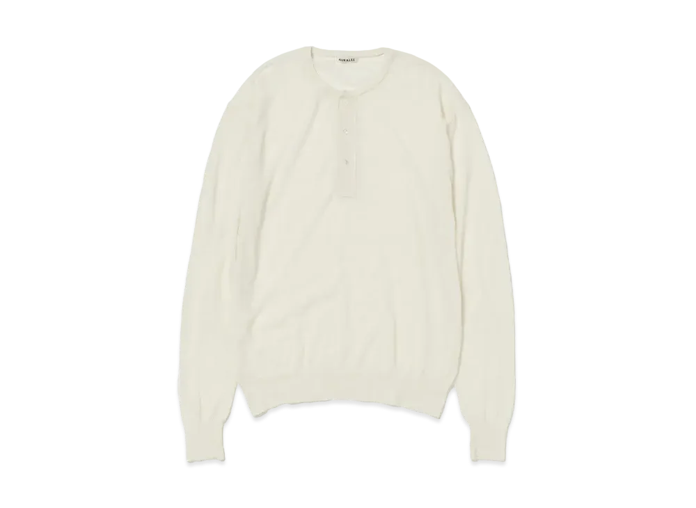 AURALEE Hard Twist High Gauge Wool Silk Knit Henley Neck P/O "Ivory"