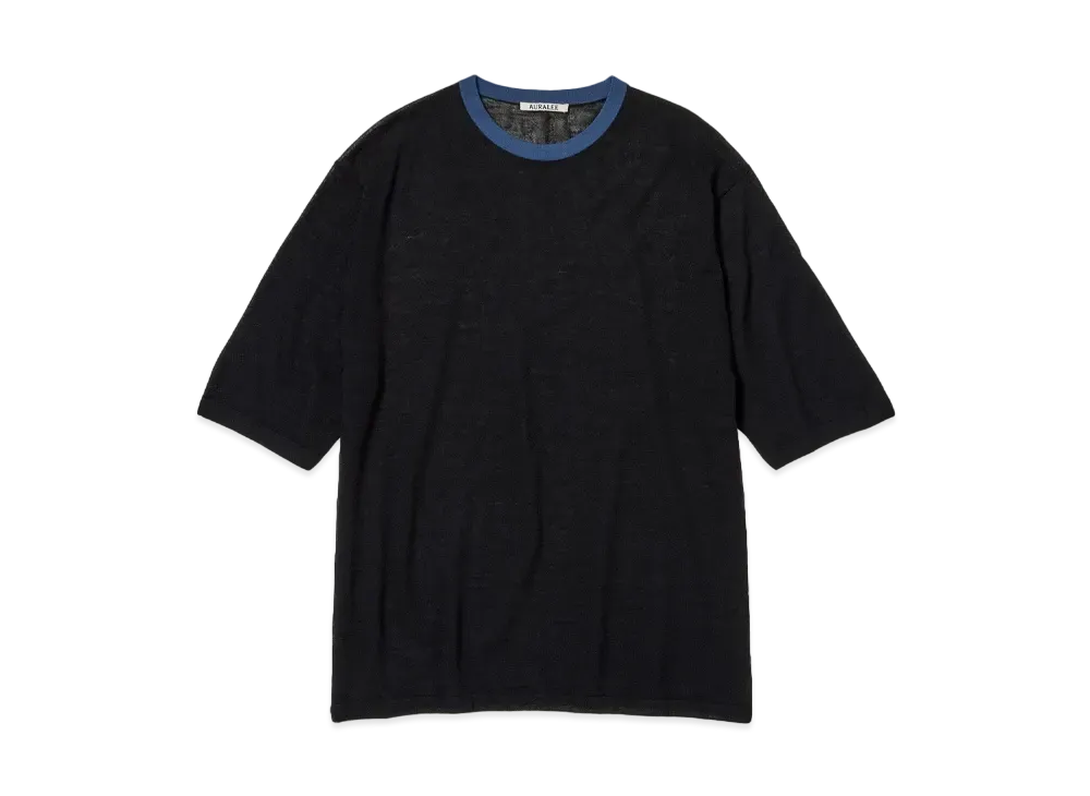 AURALEE Hard Twist High Gauge Wool Silk Knit Tee "Black"