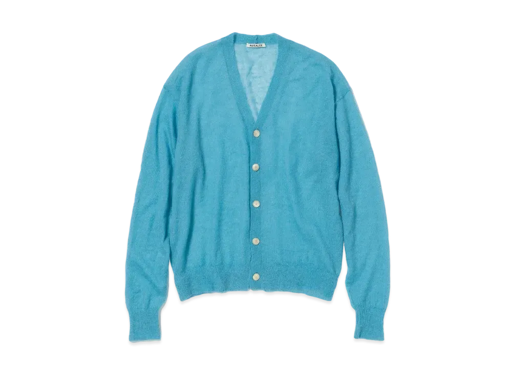AURALEE Kid Mohair Sheer Knit Cardigan "Turquoise Blue"