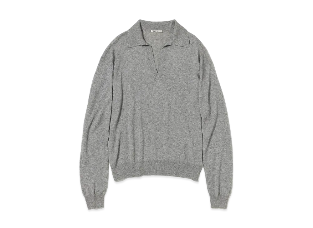 AURALEE Super Fine Cashmere Silk Knit Skipper Polo "Top Gray"