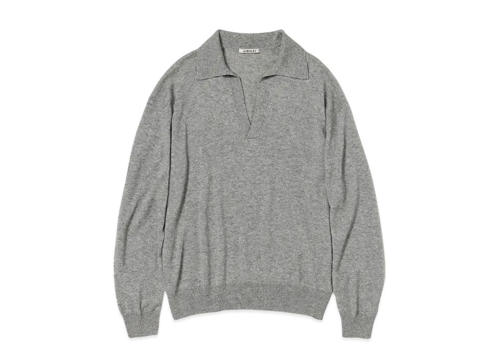 AURALEE Super Fine Cashmere Silk Knit Skipper Polo "Top Gray"