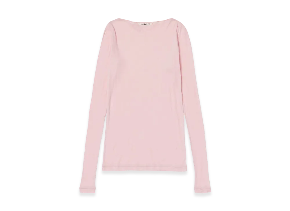 AURALEE Super High Gauge Sheer Rib Boat Neck L/S Tee "Light Pink"