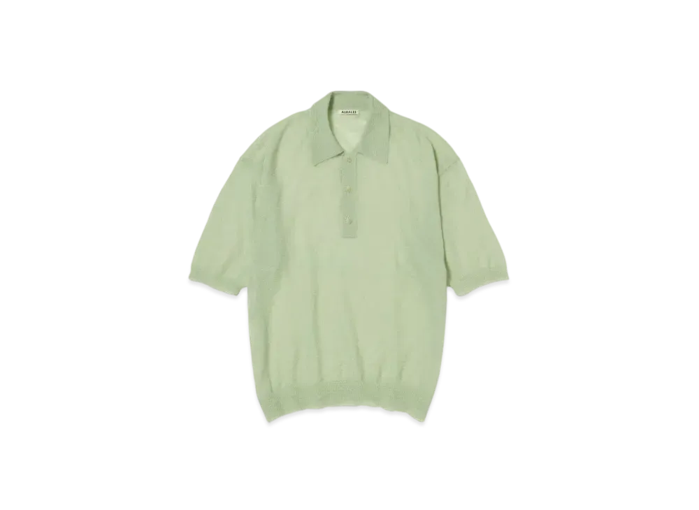 AURALEE Kid Mohair Sheer Knit Polo "Pale Green"