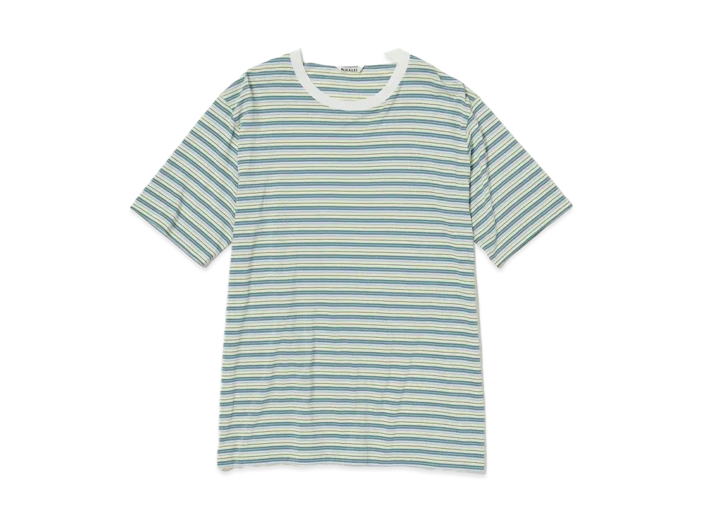 AURALEE Hard Twist Cotton Border Tee "Light Green Border"