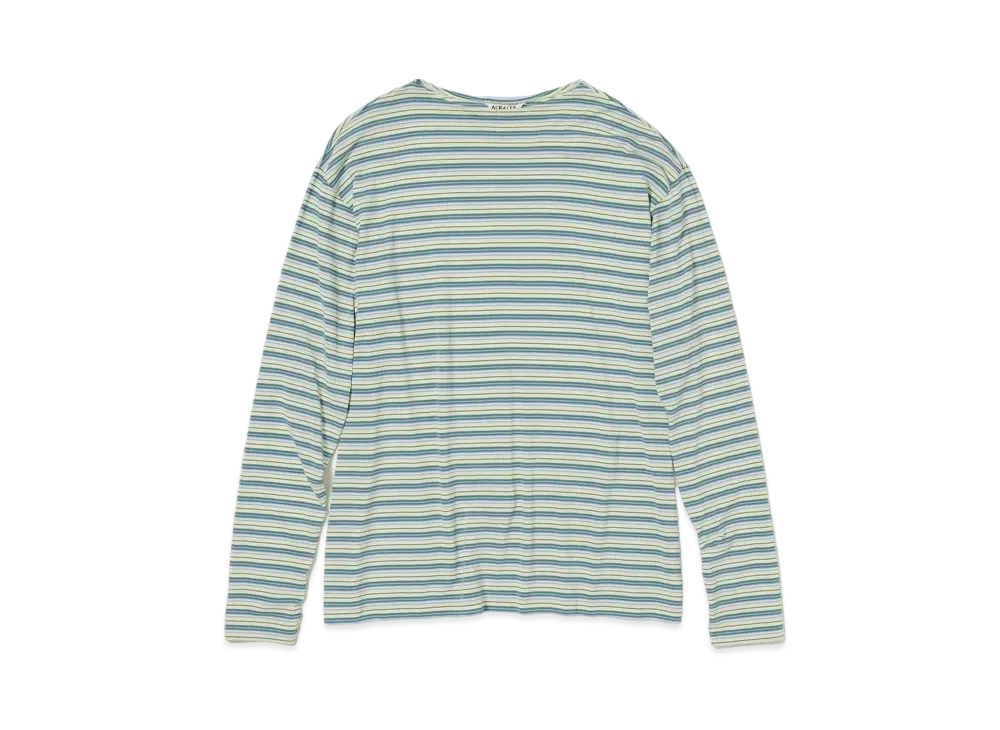 AURALEE Hard Twist Cotton Border Boat Neck L/S Tee "Light Green Border"