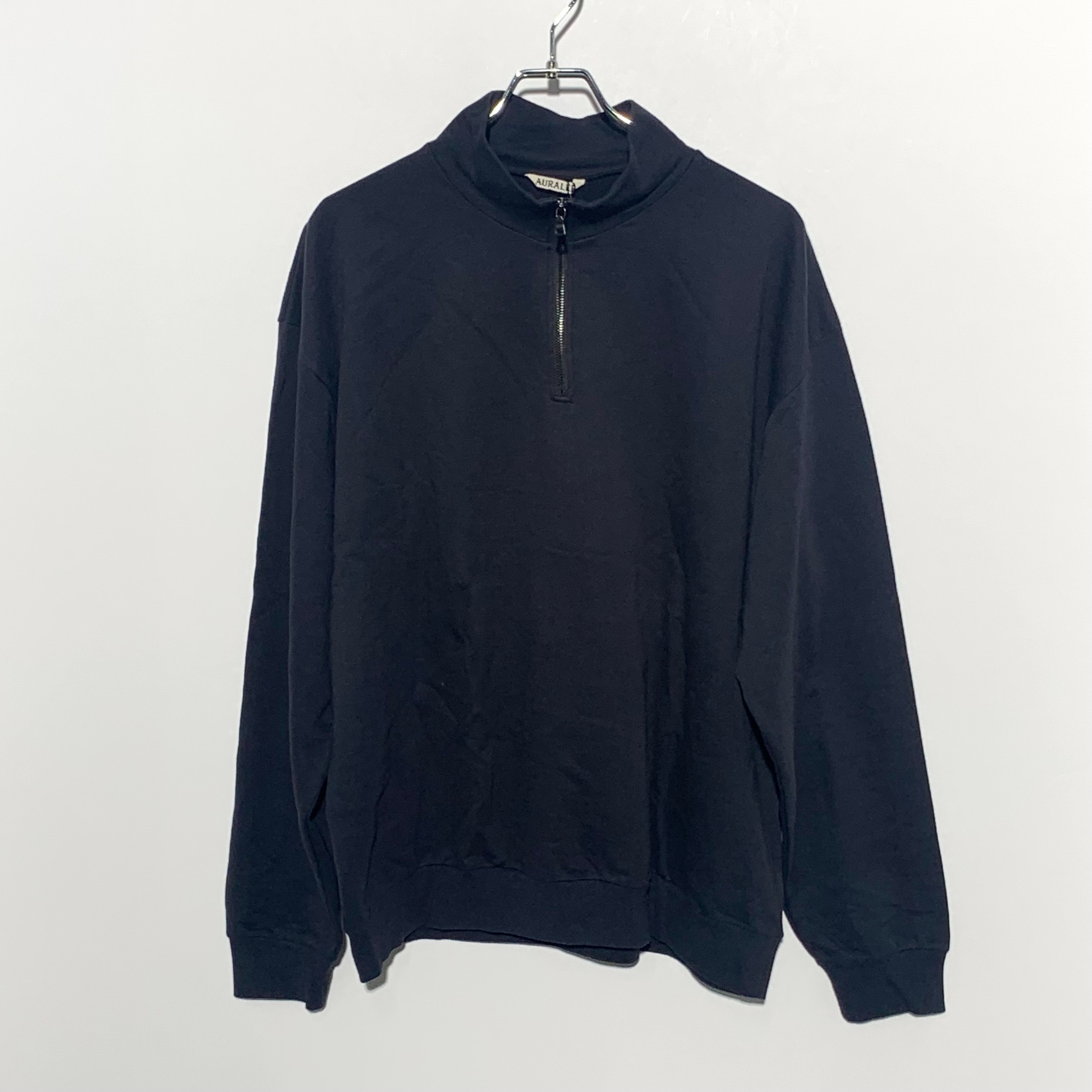 AURALEE Elastic High Gauge Sweat Half Zip P/O "Black"