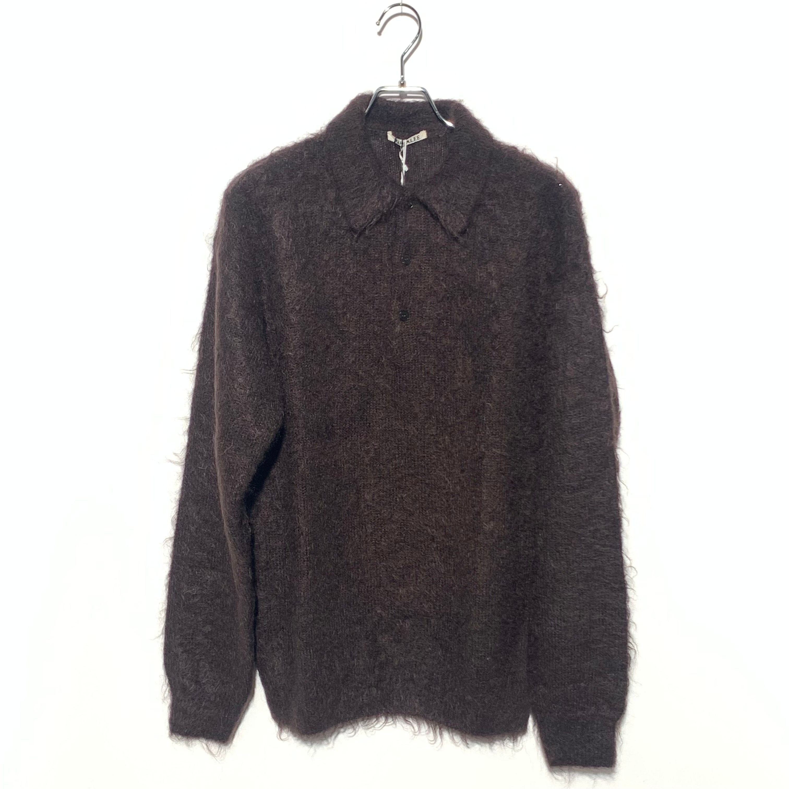 AURALEE BRUSHED SUPER KID MOHAIR KNIT POLO "Dark Brown"
