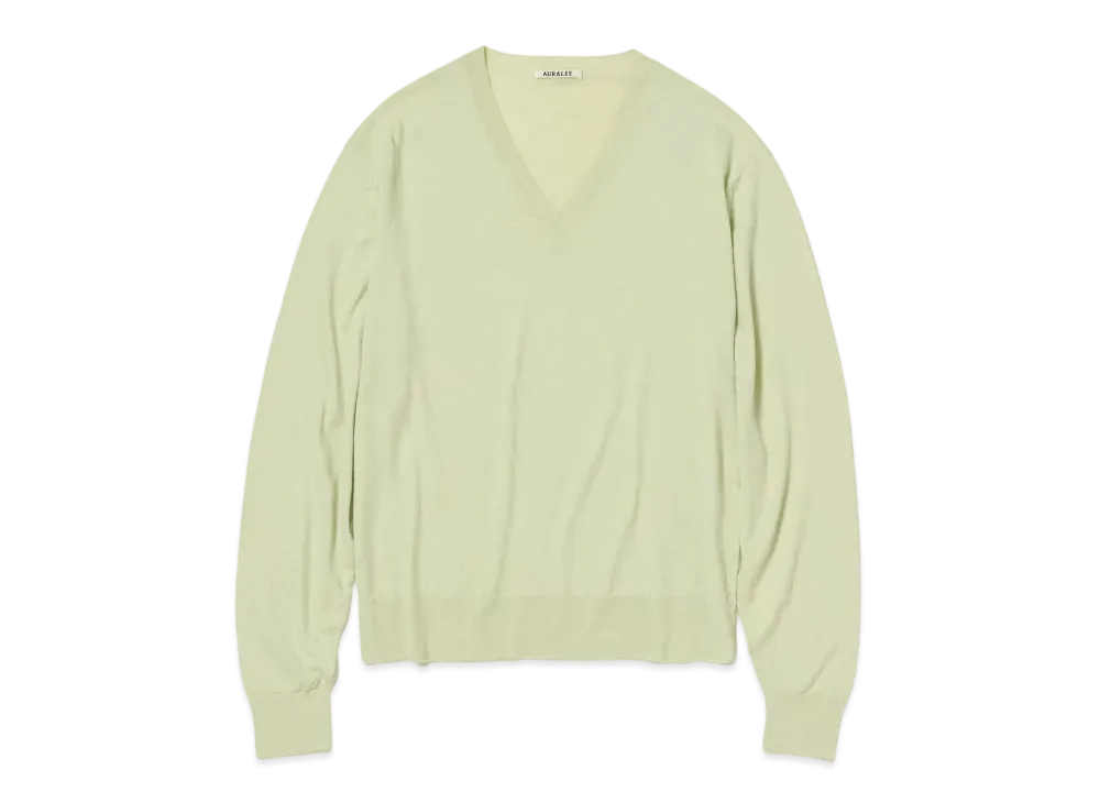 AURALEE Product Dyed Wool Knit V-Neck P/O "Light Pistachio"