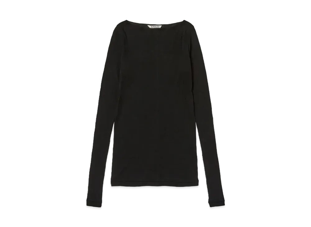 AURALEE High Gauge Sheer Rib Boat Neck L/S Tee "Black"