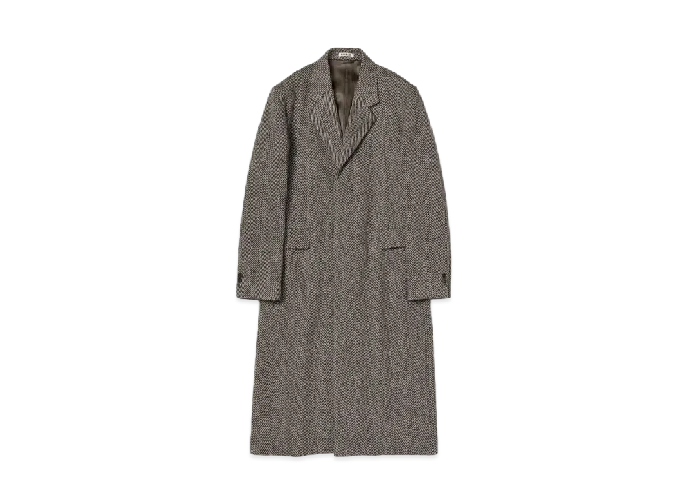 AURALEE Lama Shetland Wool Tweed Chesterfield Coat "Brown"