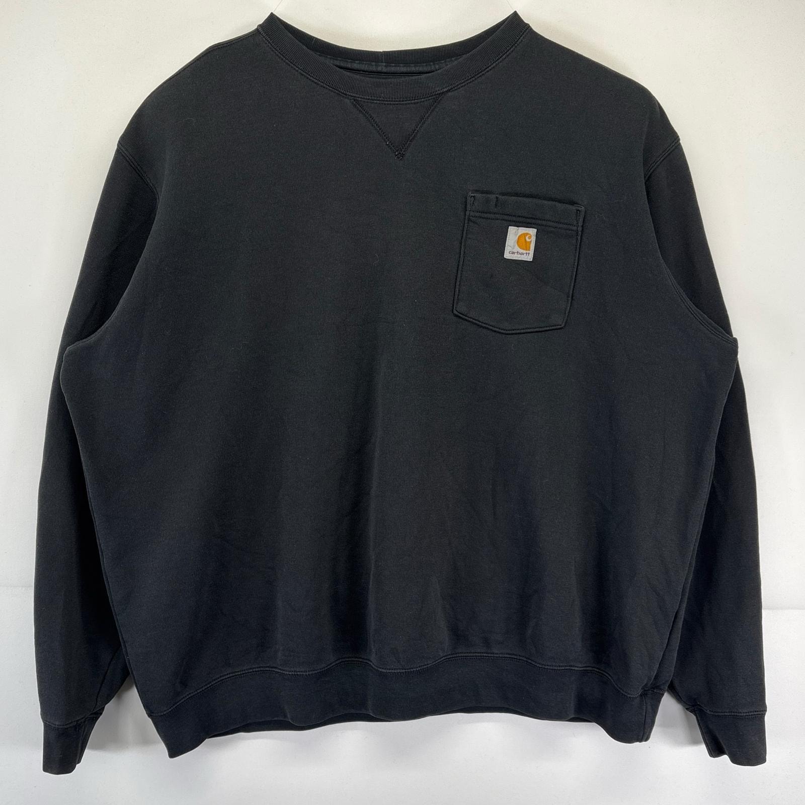 古着 カーハート Carhartt スウェット 大きいサイズ トレーナー クルーネック ワンポイントロゴ 胸ポケット 2XL ブラック メンズ