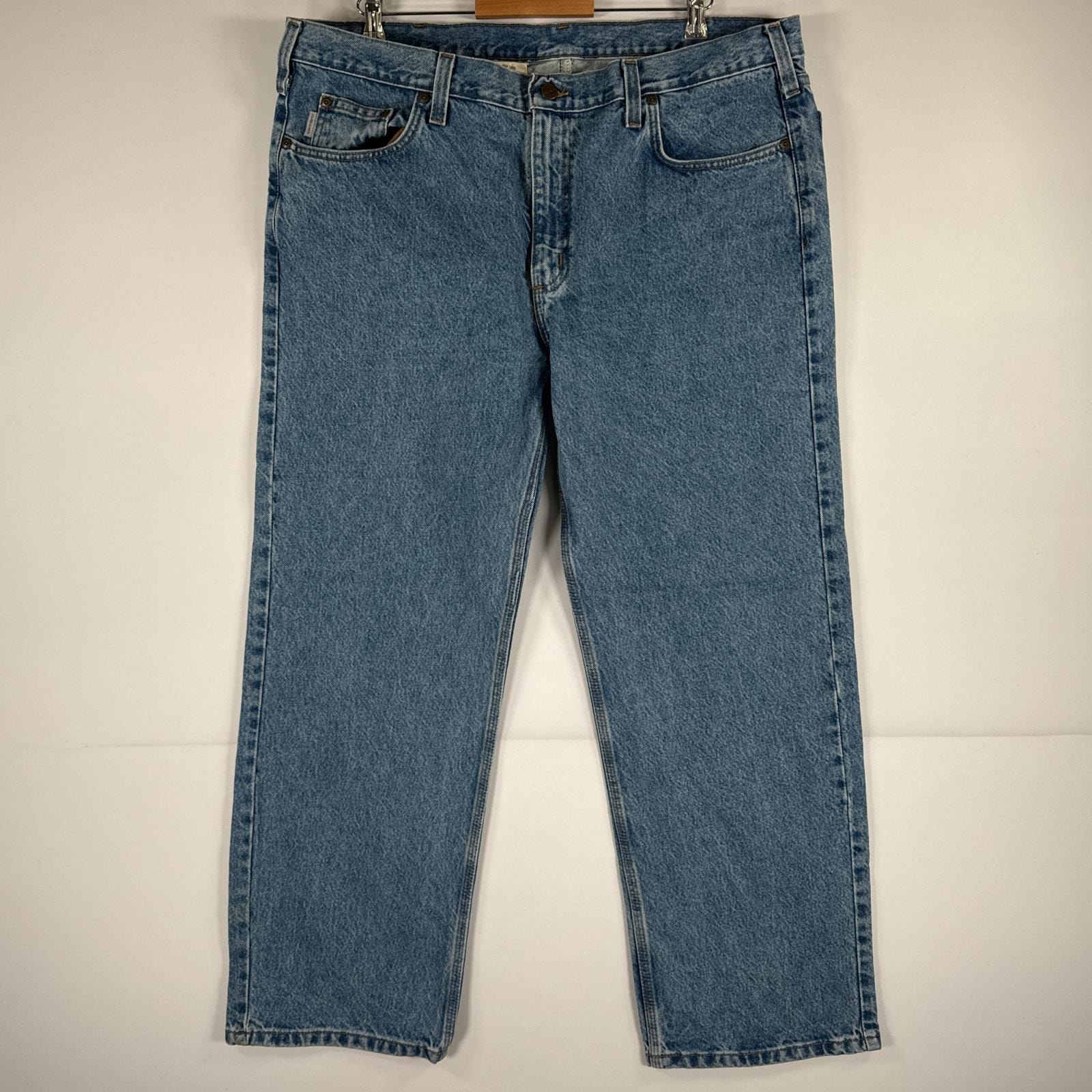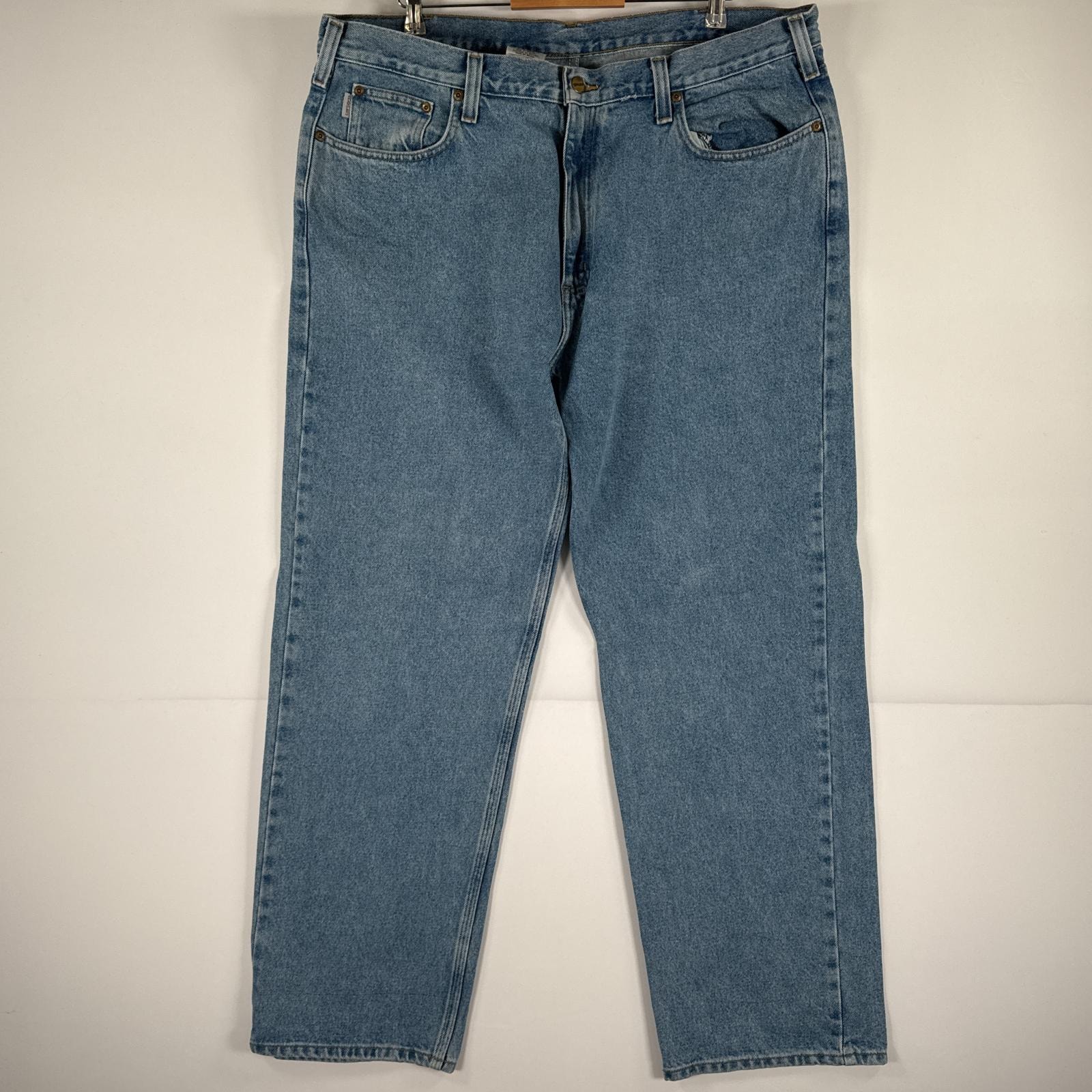 古着 カーハート Carhartt デニムパンツ ジーパン 5ポケット ワンポイント ロゴ ワークパンツ テーパード 大きいサイズ w38 L34 ブルー メンズ