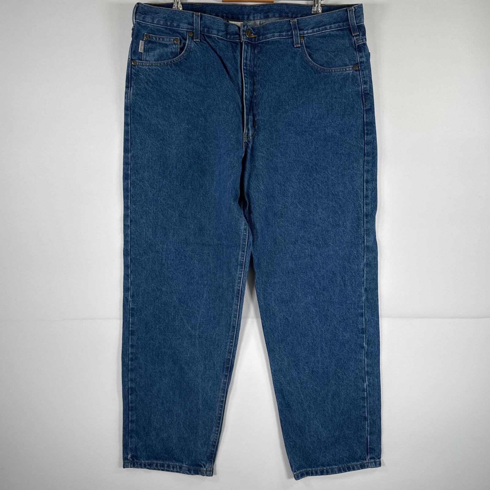 古着 カーハート Carhartt デニムパンツ ジーパン 5ポケット ワンポイント ロゴ テーパード 大きいサイズ w42 L30 ブルー メンズ