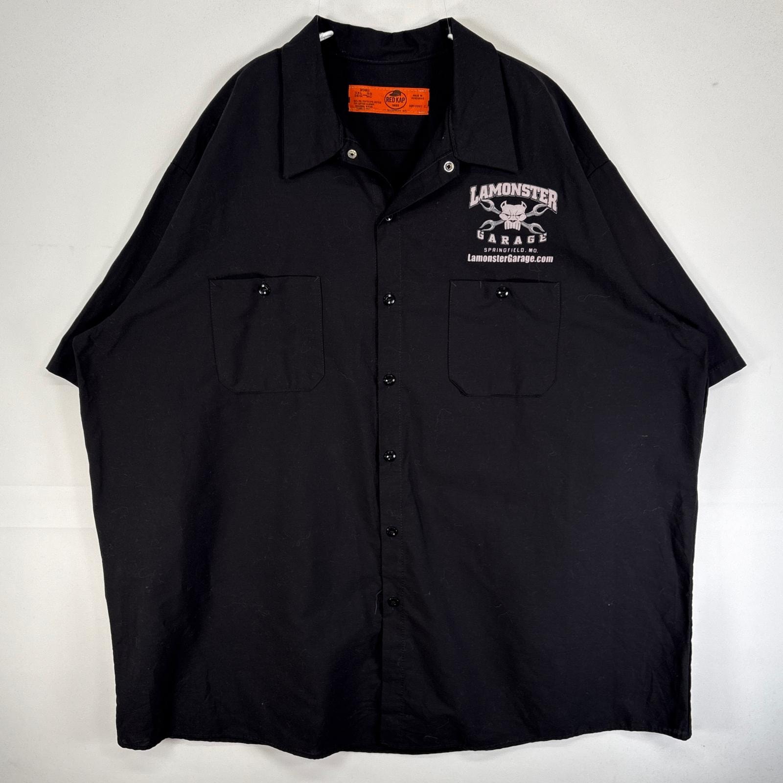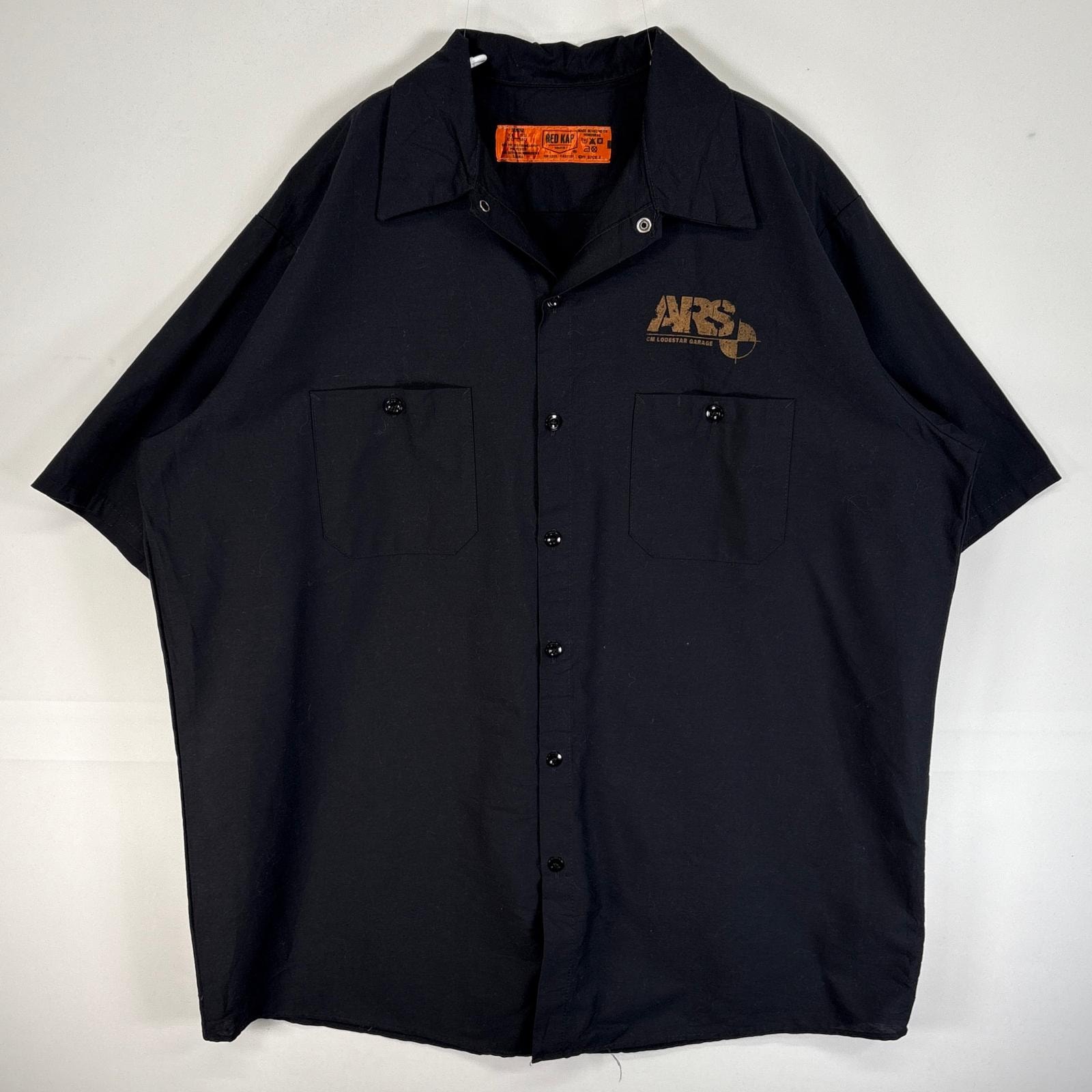 古着 レッドキャップ RED KAP 半袖シャツ ワーク 作業着 胸ポケ 大きいサイズ プリント モーターカルチャー 3XL ブラック 両面プリント メンズ