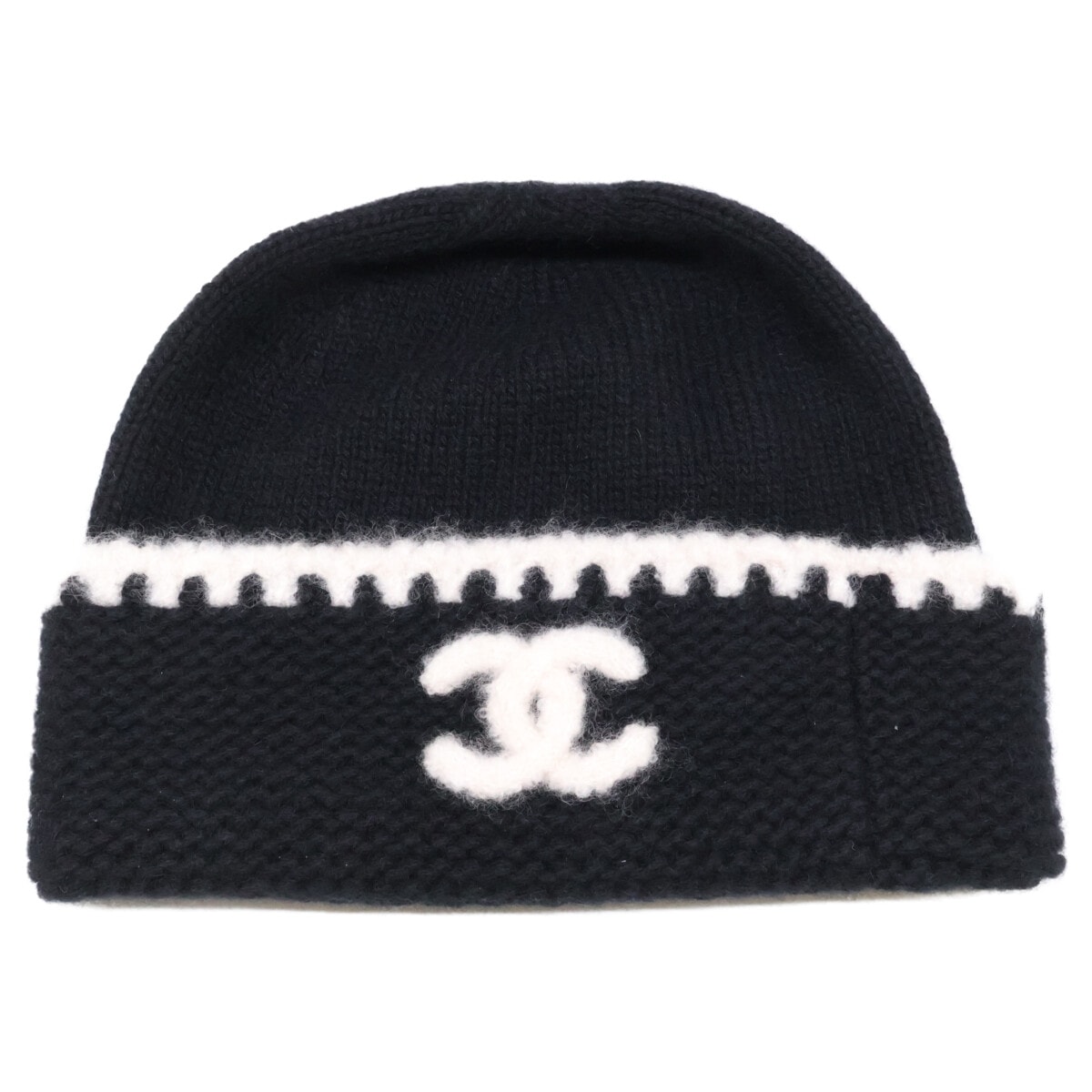 CHANEL シャネル ニットキャップ ココマーク ビーニー ニット帽 帽子 ファッションアイテム アパレル カシミヤ シルク ポリアミド ブラック 黒 レディース 秋 冬 美品【中古品】