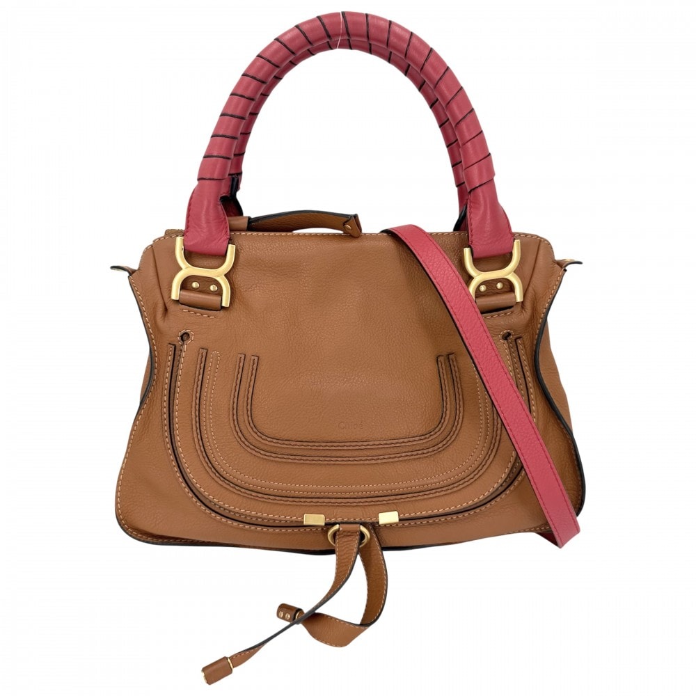 Chloe クロエ 2WAY マーシー ハンドバッグ ショルダーバッグ 肩掛け 斜め掛け LIMITED EDITION レザー ブラウン 茶 レッド 赤 ゴールド金具 レディース【中古品】