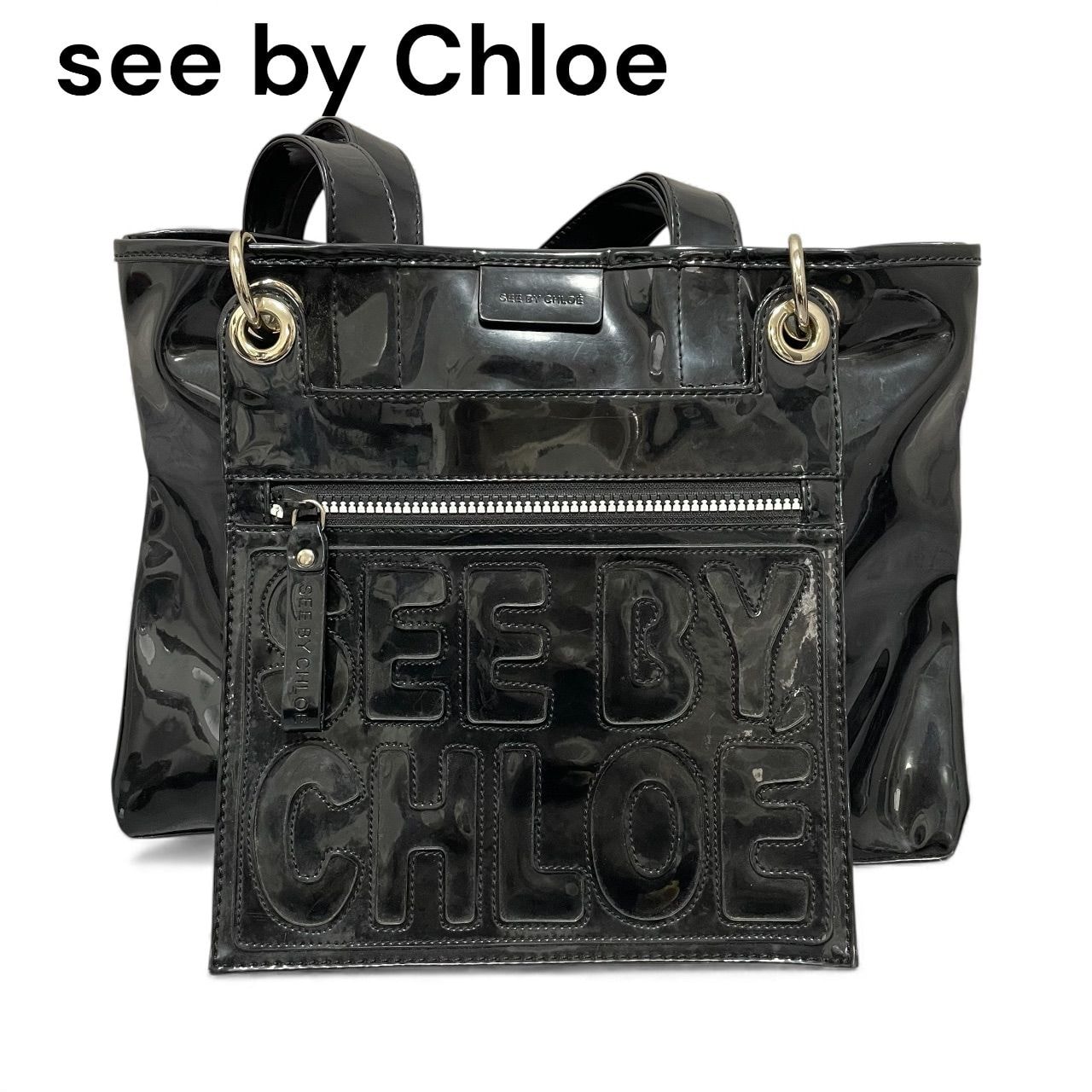 クロエ Chloe Woody シャイニーカーフスキン ハンドバッグ
