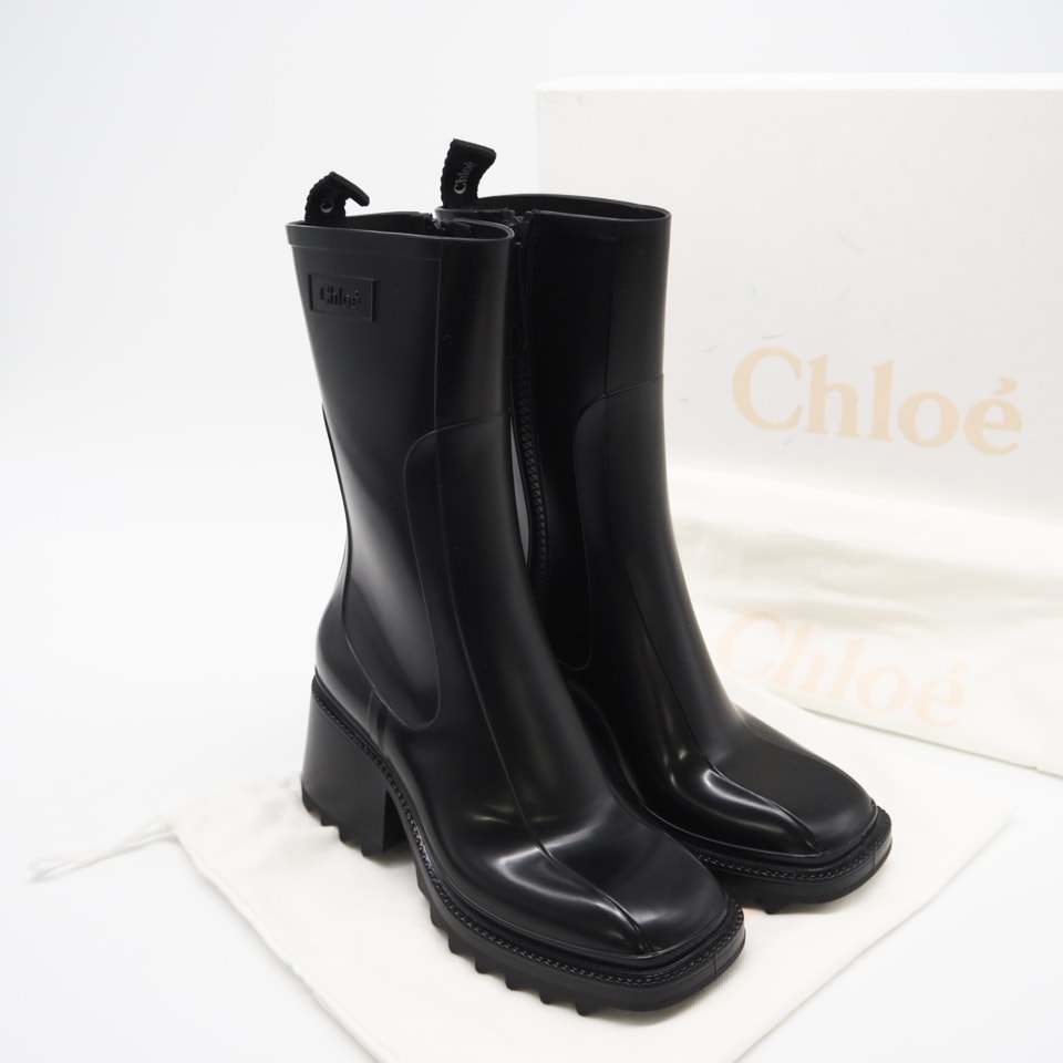 極美品 Chloe クロエ PVC レインブーツ 6 23.5 CHC22A239Z2001 ブーツ ブラック ラバー レディース