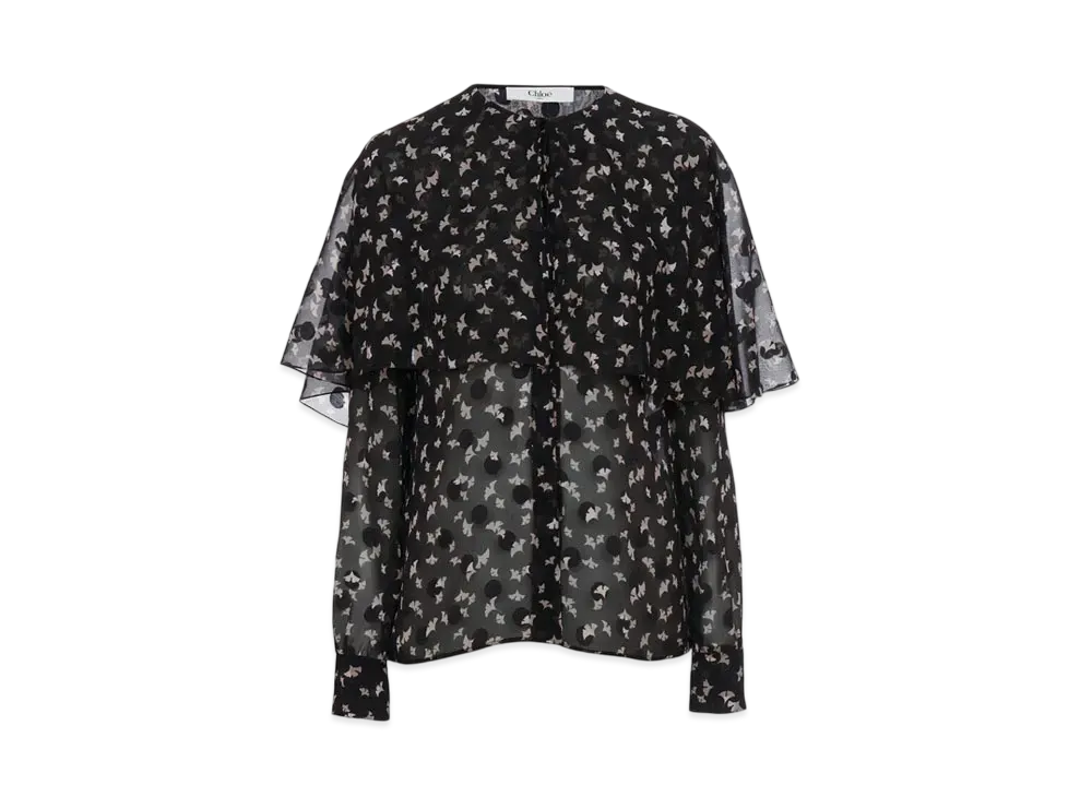 Chloe Cape Blouse In Silk Satin Jacquard "Black"