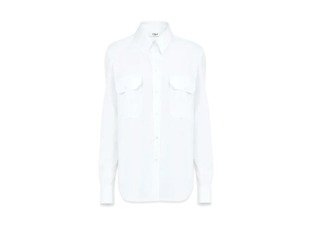 Chloe Classic Utilitarian Shirt In Cotton Poplin "White"