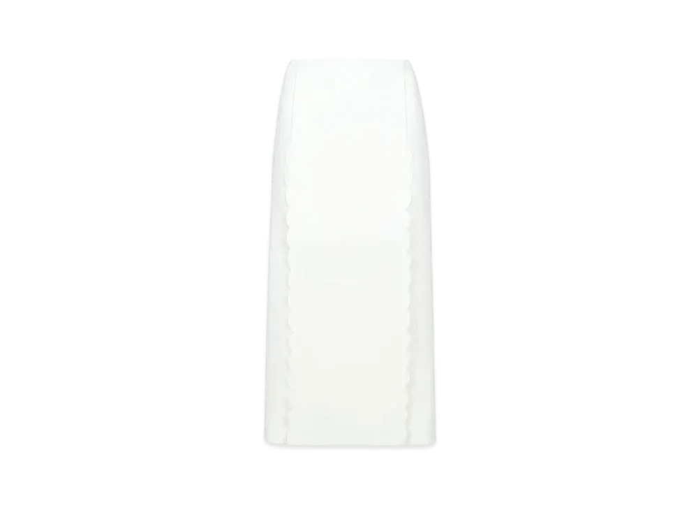 Chloe Scallop Embroidered Column Skirt In Fluid Viscose "Iconic Milk"