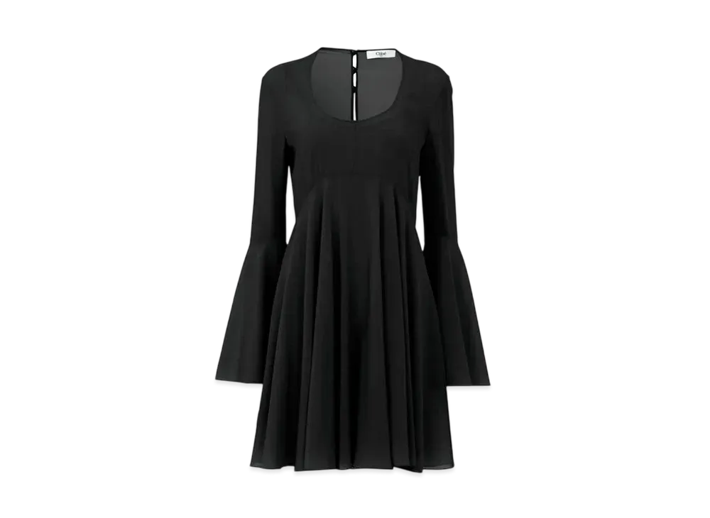 Chloe Flared Mini Dress In Silk Georgette "Black"
