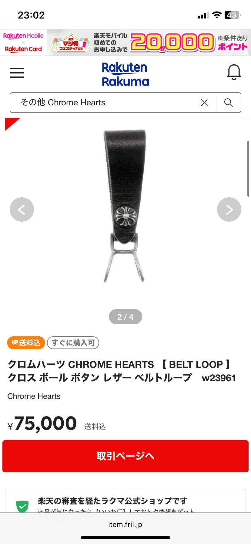 クロムハーツ ベルトループ クロス ブラック
