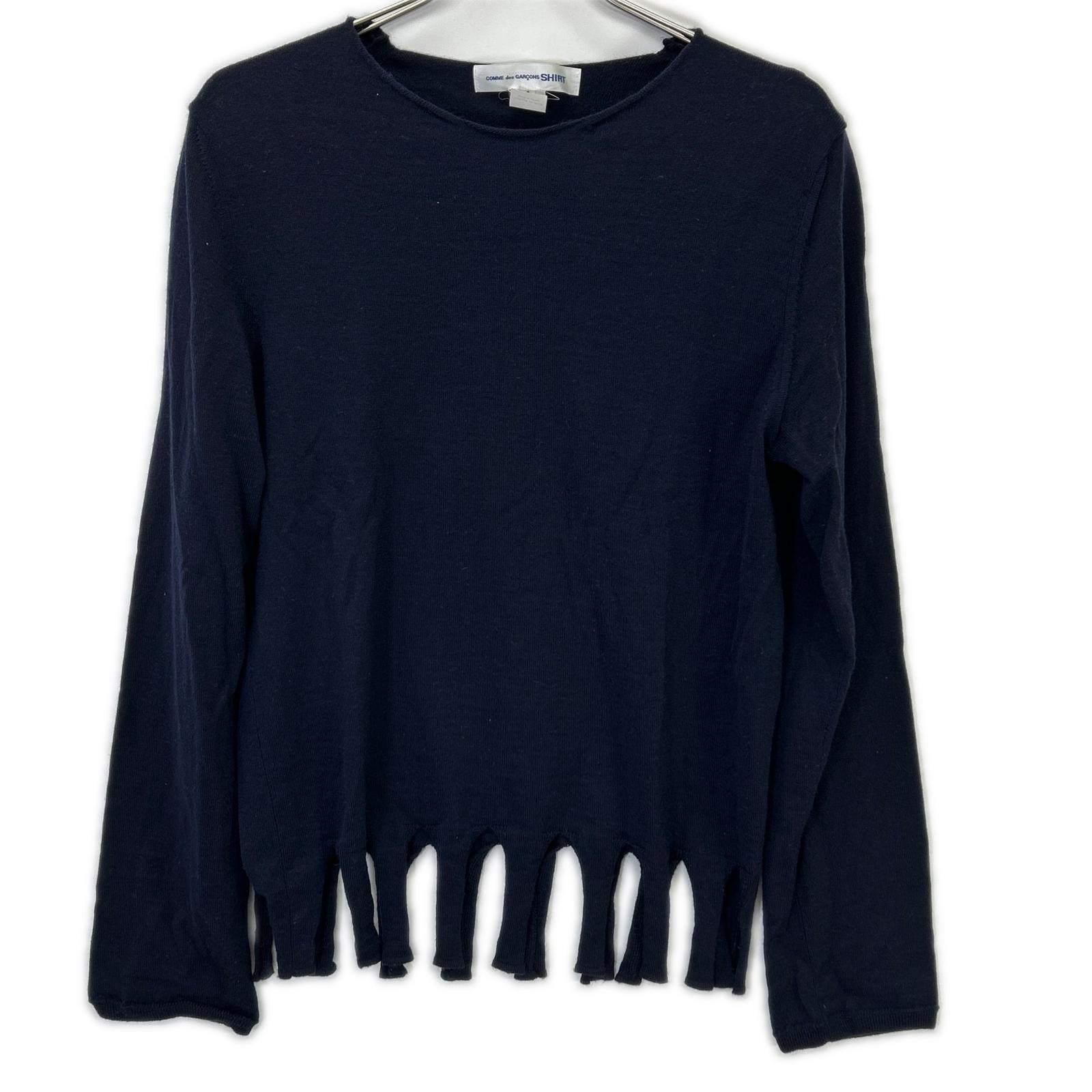 コムデギャルソンシャツ W26508 ウール 裾フリンジ ニットセーター S
