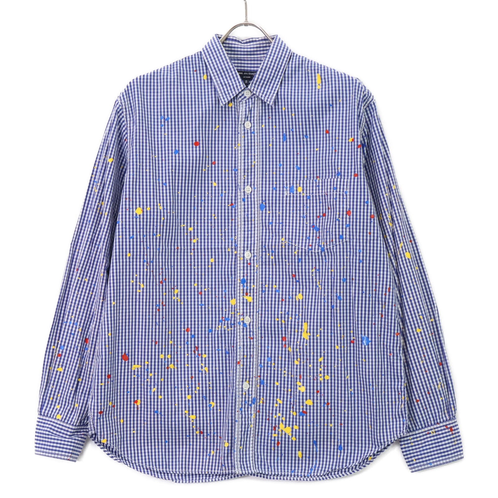 コムデギャルソンオム 【美品】HD-B015 ギンガムチェック ペイント加工 長袖シャツ S