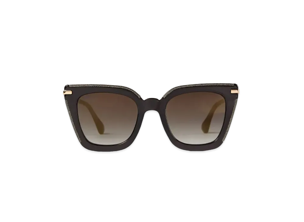 Jimmy Choo Jan Glittered Square Frame Sunglasses With JC Logo "Black"