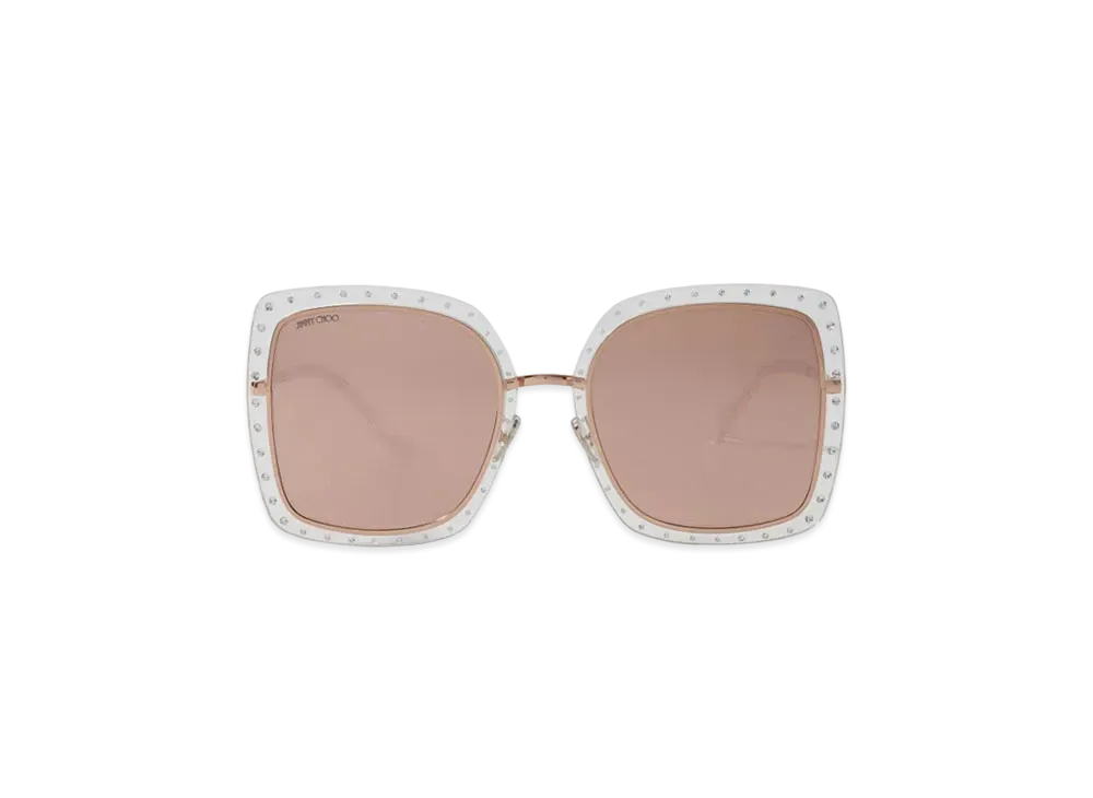Jimmy Choo Eleni Glittered Square Frame Sunglasses With JC Logo "Nude"