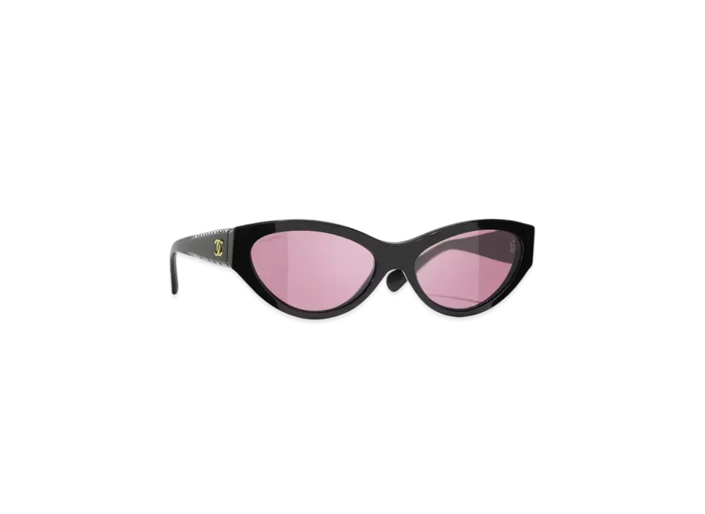 CHANEL Cat Eye Sunglasses Acetate & Strass "Black/Pink"