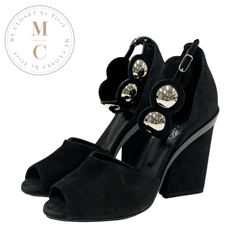 エルメス HERMES サンダル 靴 シューズ スエード ブラック 黒 シルバー 未使用 アンクルストラップ