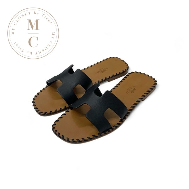 エルメス HERMES オラン サンダル 靴 シューズ レザー ブラック ブラウン ステッチ フラットサンダル ミュール