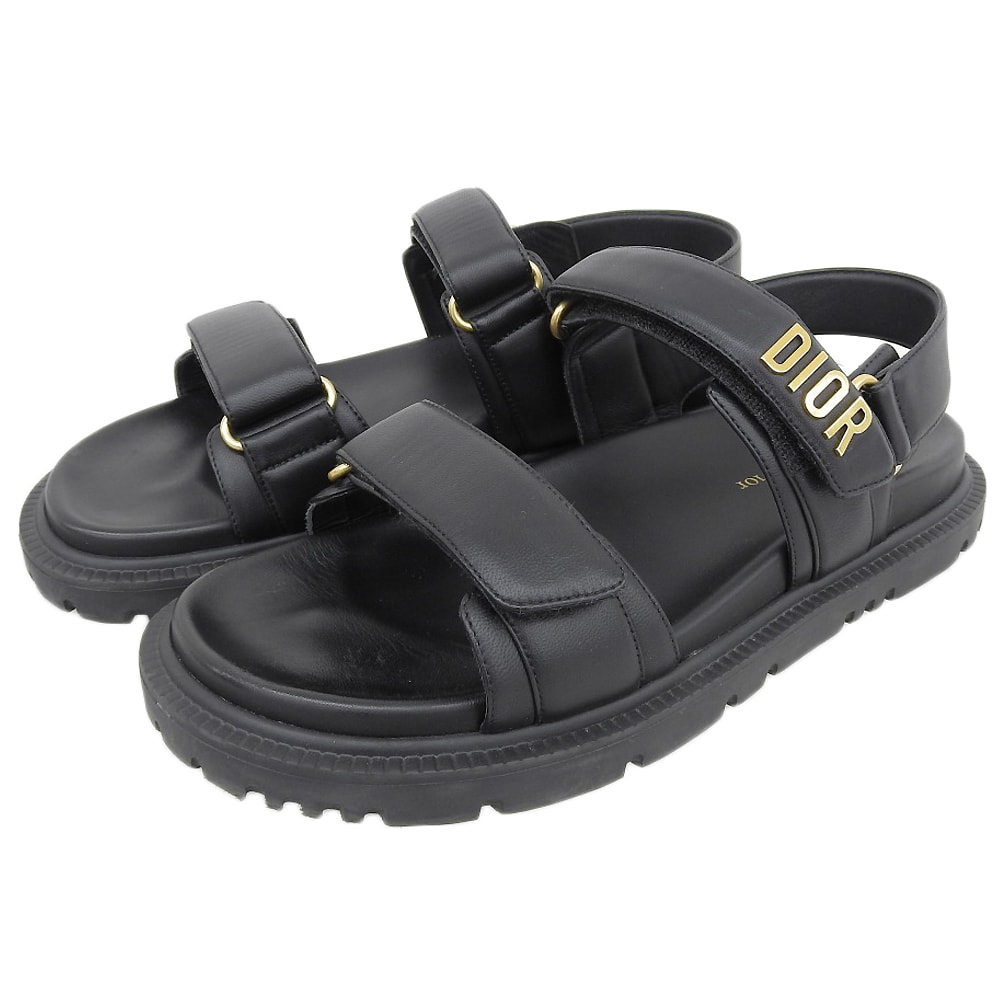 ディオール ディオールアクト ラムスキン メタルロゴ バックストラップサンダル メンズ ブラック×ゴールド 39 KCQ547LAB 39