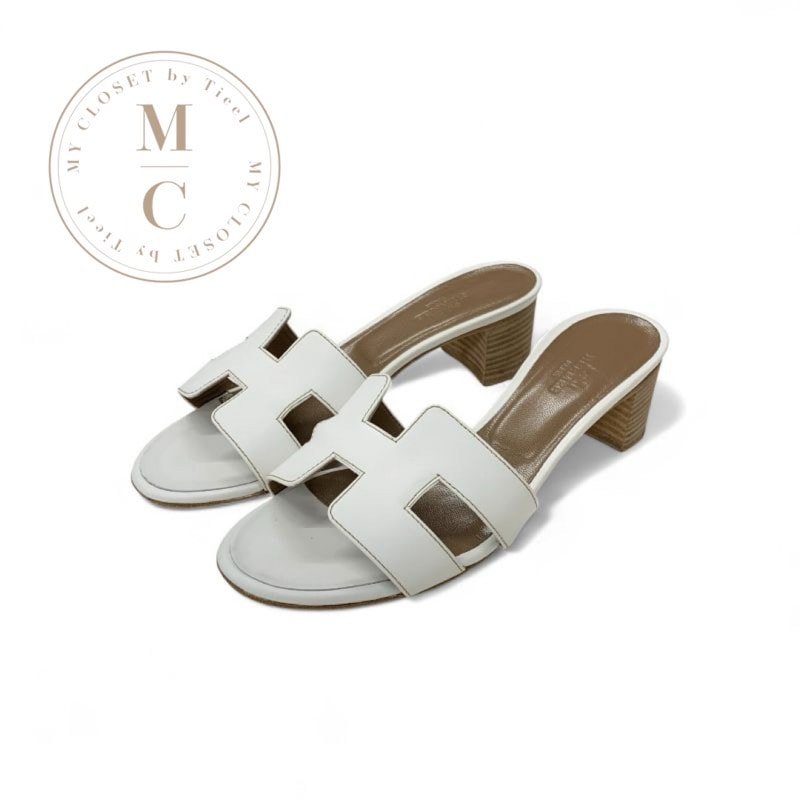 エルメス HERMES オアジス サンダル 靴 シューズ レザー ホワイト 白